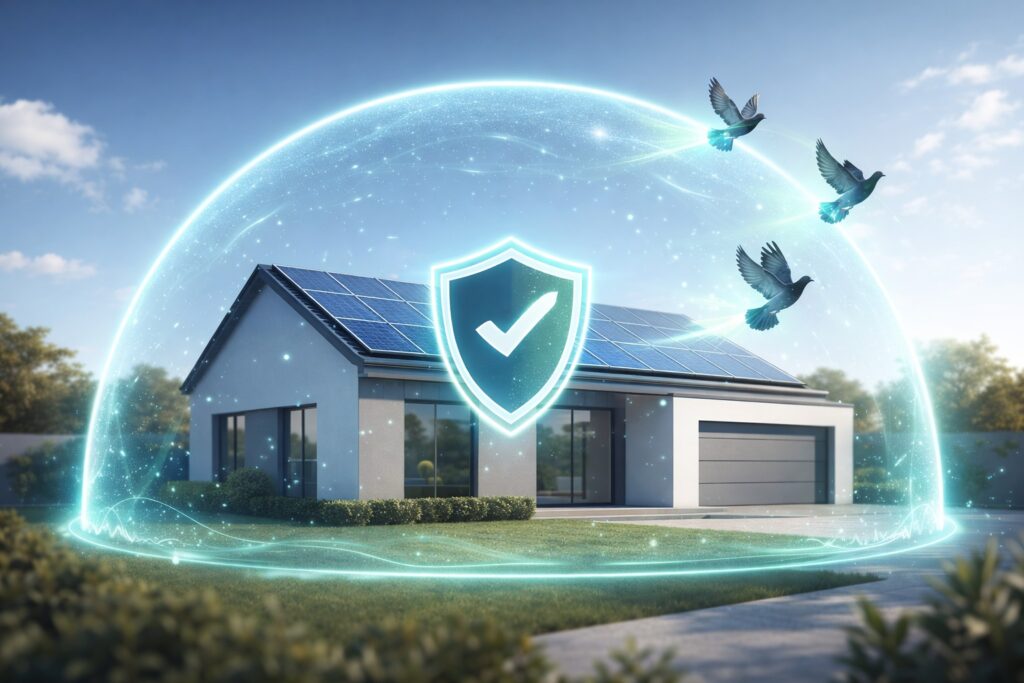 Solar panels are a smart investment – but they also attract pigeons, which often nest underneath and become incredibly hard to remove. Their presence can lead to chewed wiring that risks system failure or fire, corrosive droppings that damage your roof, and nests that clog gutters and cause water damage. On top of that, there’s constant noise, foul smells, and serious health risks from bacteria in their waste.